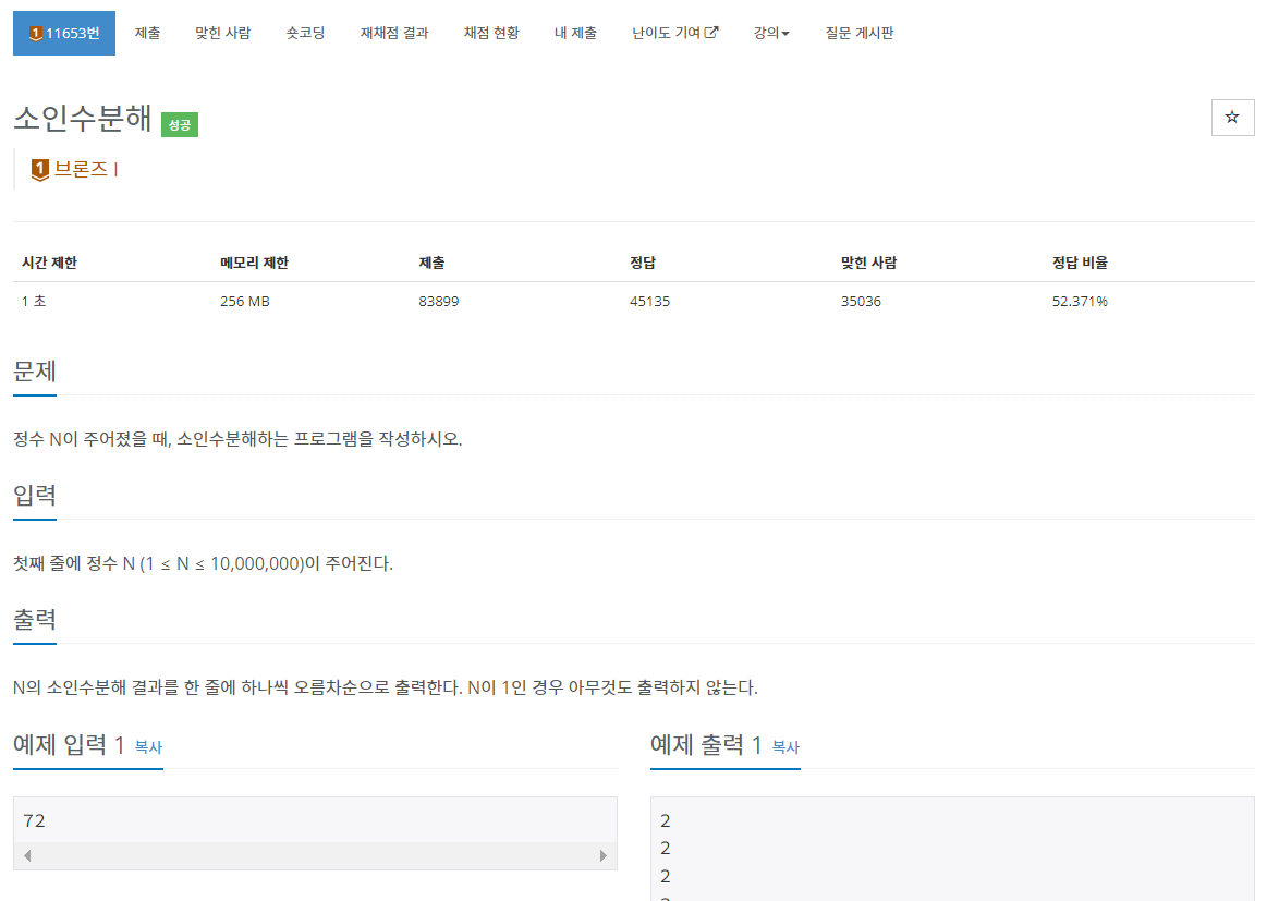 11653번: 소인수분해